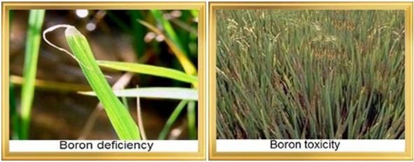 - बोरॉन की कमी से प्रभावित होने पर पौधे पुष्पगुच्छ बनाने में असमर्थ होते है।