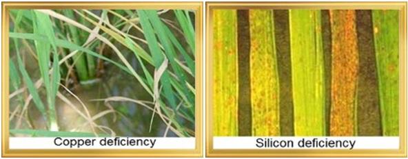 - ज्यादा सिलिकॉन की कमी से बाली की संख्या और प्रति बाली भरे हुए दानों की संख्या कम हो जाती है।