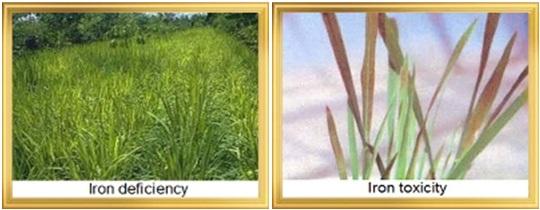 - लोहे की उपलब्धता मुख्य रूप से ऊपरी मिट्टी में एक बड़ी समस्या होती है।