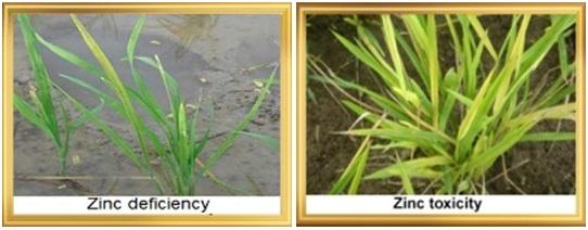 - अत्यधिक जिंक आमतौर पर पौधों में आयरन क्लोरोसिस पैदा करता है।