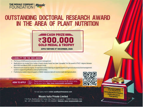 Cash prize (Rs. 30,0000), Gold Medal & Trophy); instituted by the Mosaic Company Foundation, This award is meant exclusively for doctoral thesis related to agricultural sciences from any Indian Institutions.